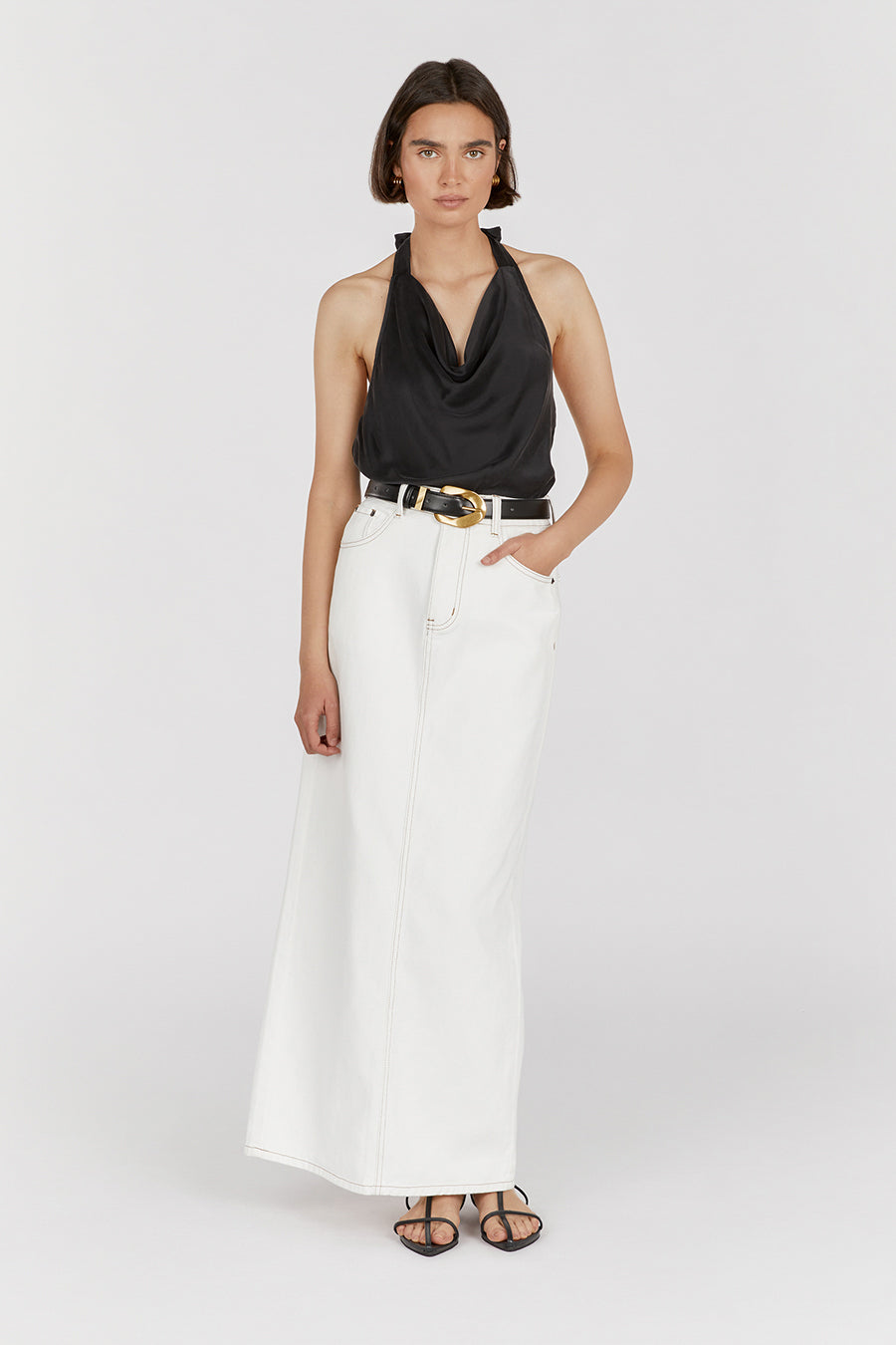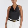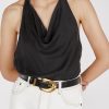 AIMEE BLACK SILK COWL NECK TOP