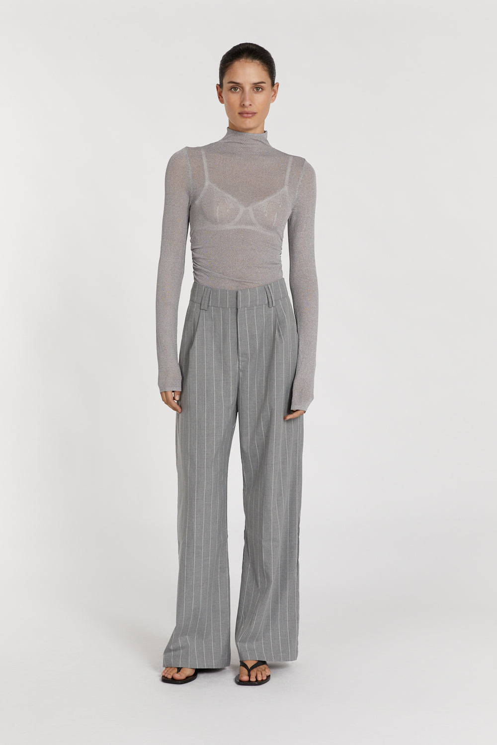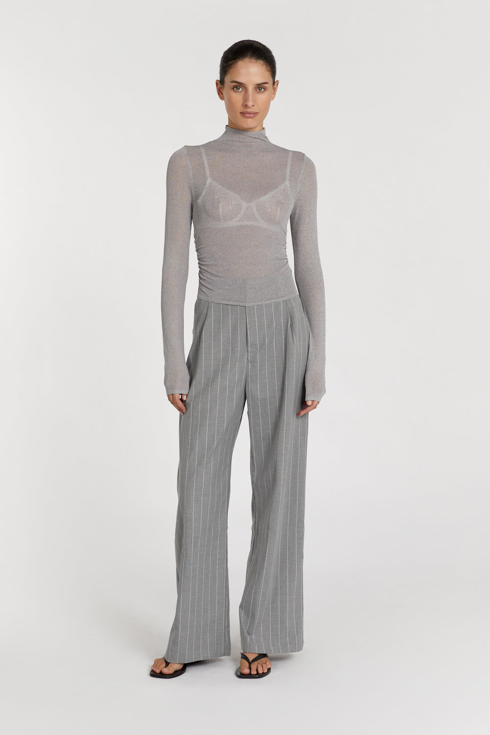 CONSTANCE GREY MARLE LONG SLEEVE KNIT TOP