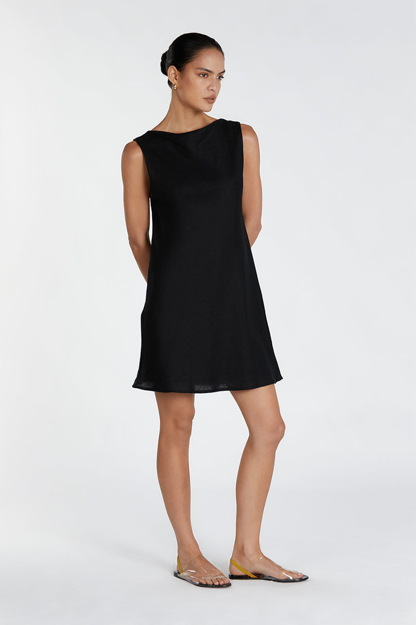 HARMONY BLACK COWL LINEN MINI DRESS