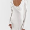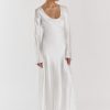 LEA WHITE SLEEVED SATIN MAXI DRESS
